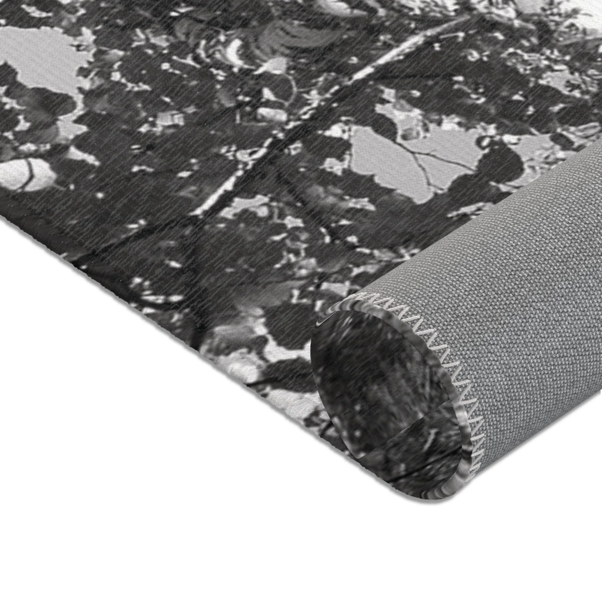 Stretch out beneath a canopy of birch and sky. This chenille area rug brings a quiet forest moment into your room — the pale birch trunks reaching up against a cool blue sky, dappled leaves casting soft texture across the weave. It feels like stepping onto a woodland path: grounding, calm, and subtly alive. Lay it in an entryway to welcome guests with a breath of green, place it by a reading chair to anchor your nook, or roll it out in a sunlit studio where nature fuels creativity. The woven polyester pile holds crisp color and pattern wash after wash, while the hemmed edges and grey underside keep the shape steady and the look intentional.